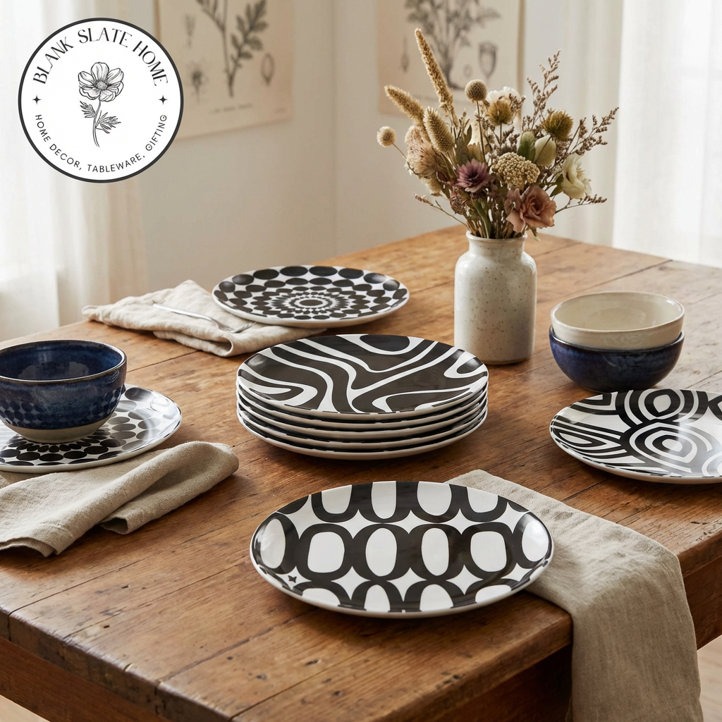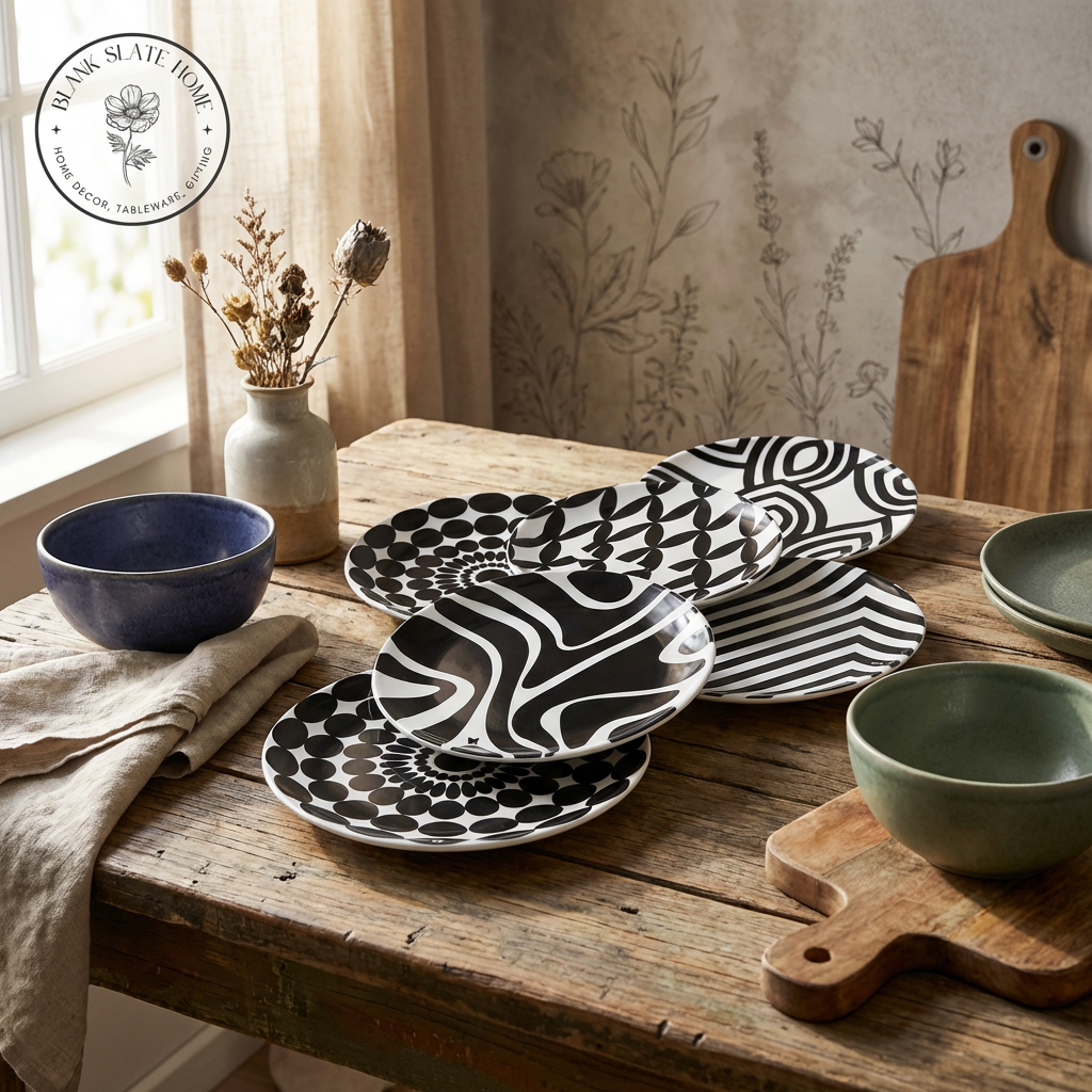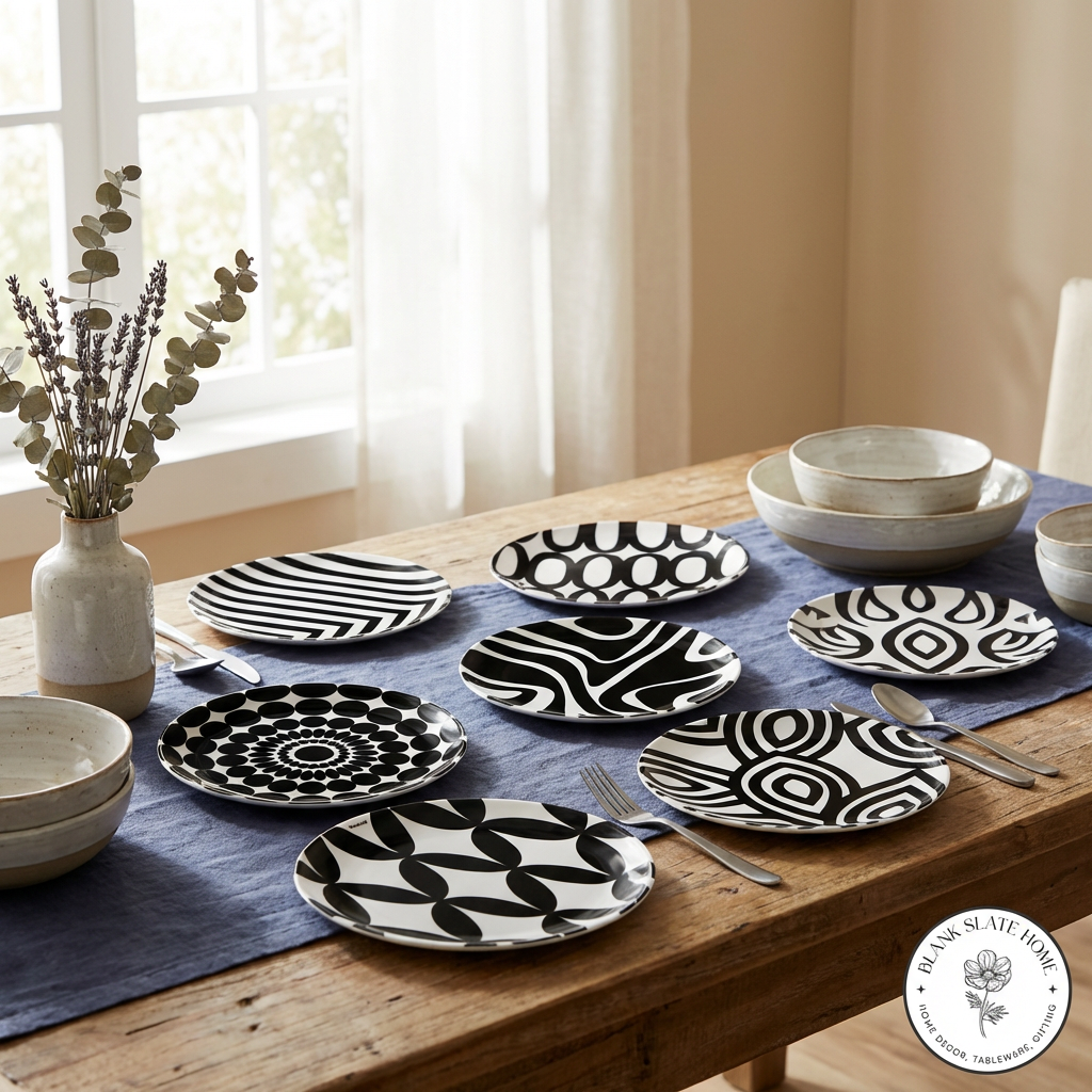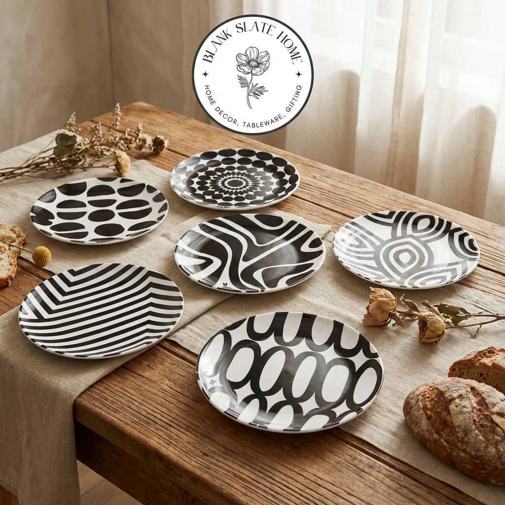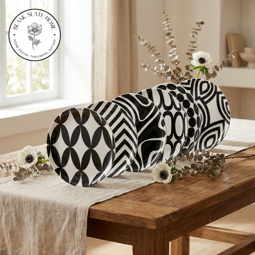 French Bull Appetizer Plate Set of 6 - Black and White Assorted