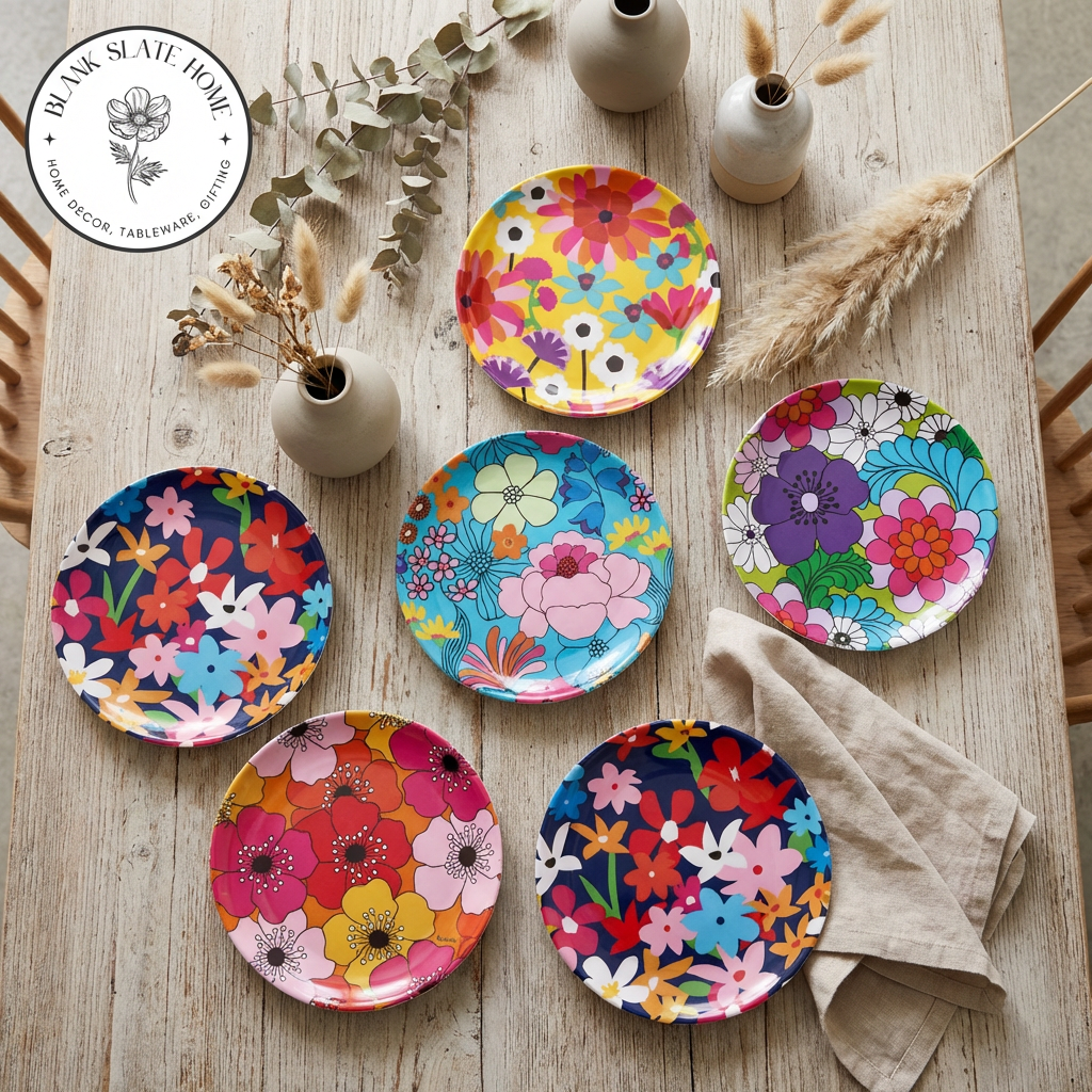 Fun set of 6 melamine appetizer plates. Sized to fit your favorite snacks and desserts, they'll make a splash in any setting. French Bull's high-grade glazed melamine 6 inch plate set is great for the home or as a gift. The scratch and shatter resistant dishes are easy to clean since they're dishwasher safe, and heat resistant to 356-degree F, 180-degree C. The durability and functionality of the material is perfect for indoor or outdoor entertaining. French Bull - reinterpreting everyday staples with a fresh, modern spin.