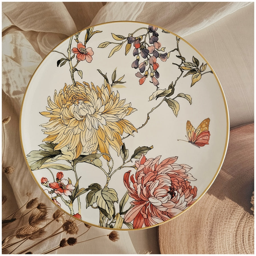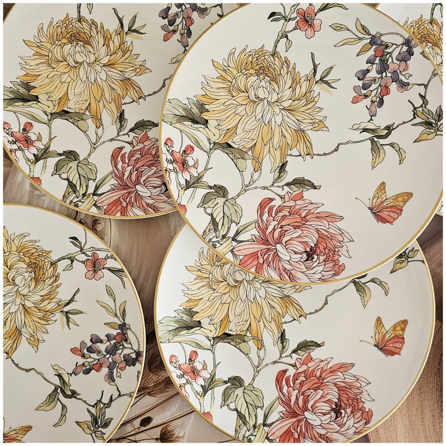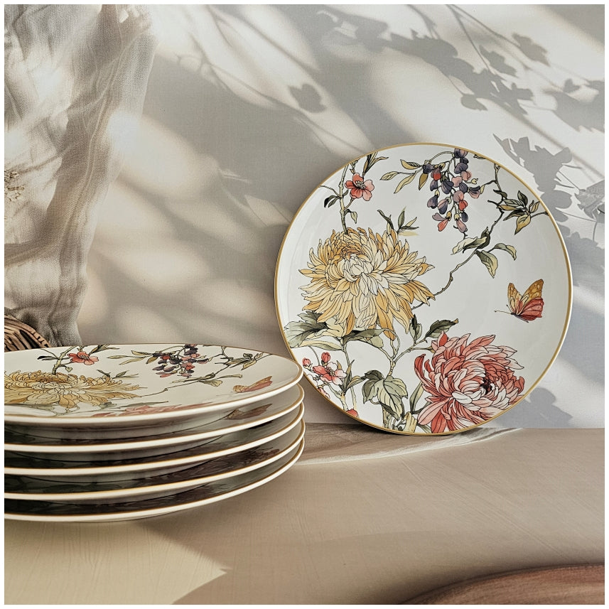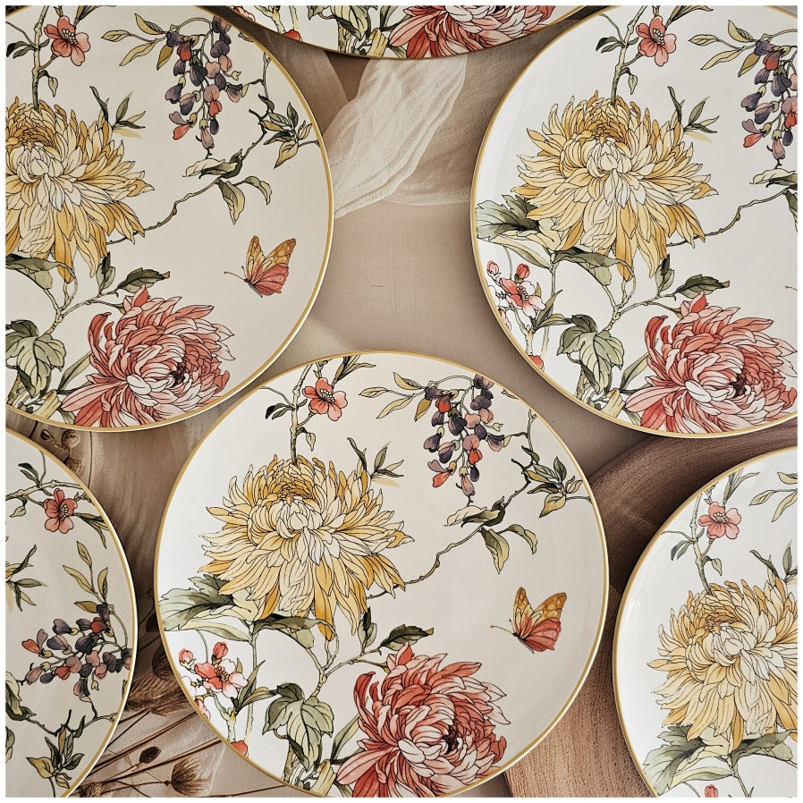 Ceramic - Dinner Plates Flat Set of 6 pieces - English Autumn