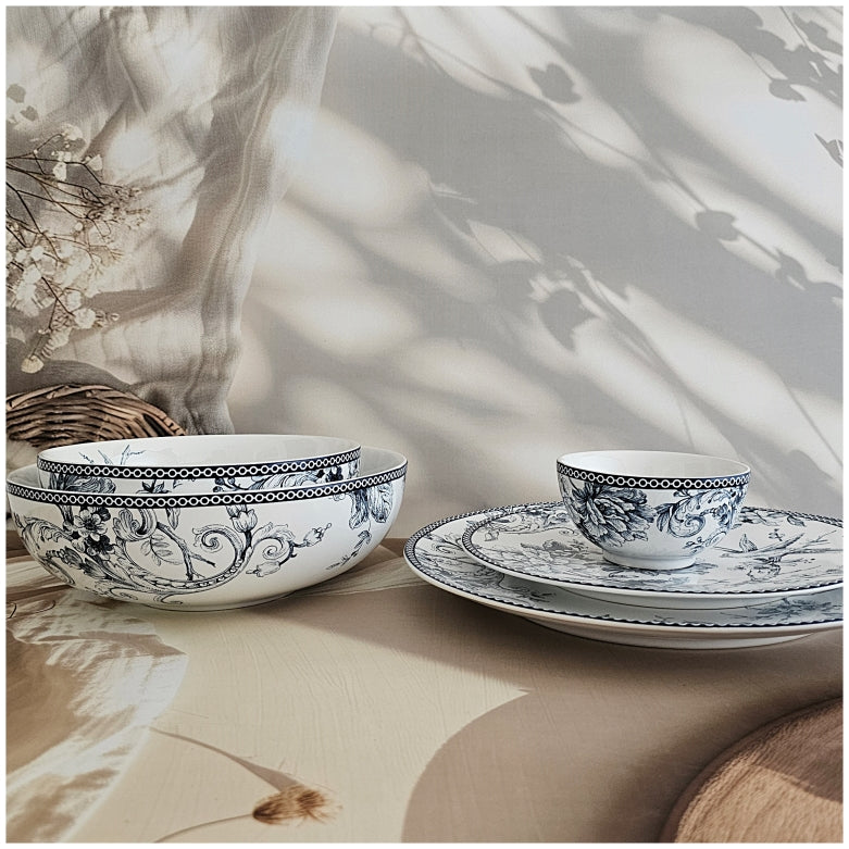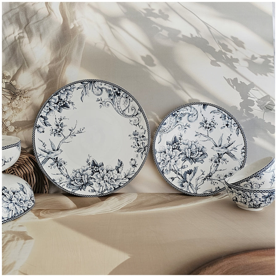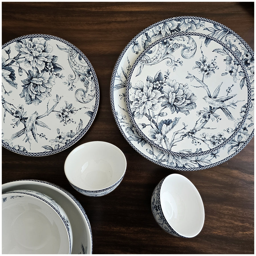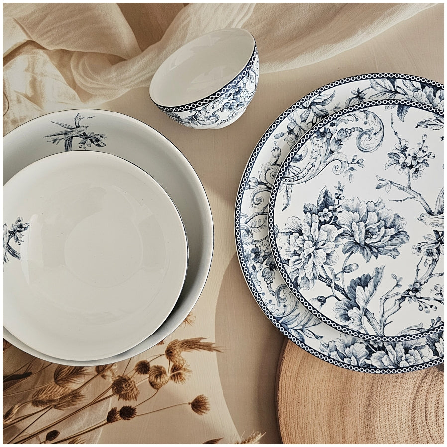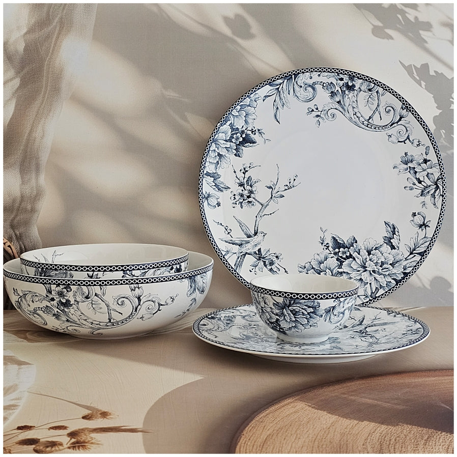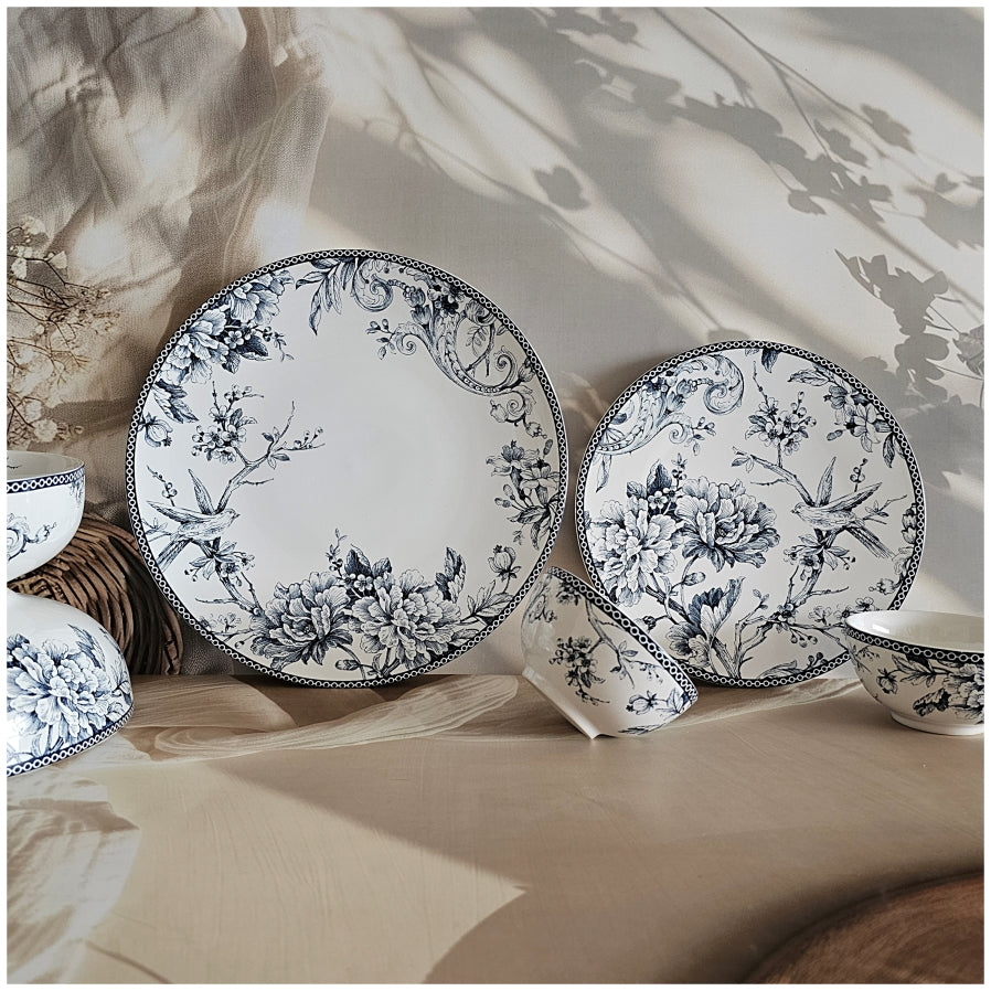This floral printed dinner set of 6 pieces in hues of blue is ideal for every day. It includes 6 Dinner Plates, 6 Quarter Plates, 6 Small Bowls, 2 Medium Bowls, 1 Large Bowl. Pair it with other pieces from the same collection. Perfect while entertaining friends and family. Beautiful house warming or birthday gifts.