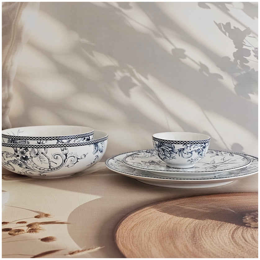 Includes 6 Dinner Plates, 6 Quarter Plates, 6 Small Bowls, 2 Medium Bowls, 1 Large Bowl.