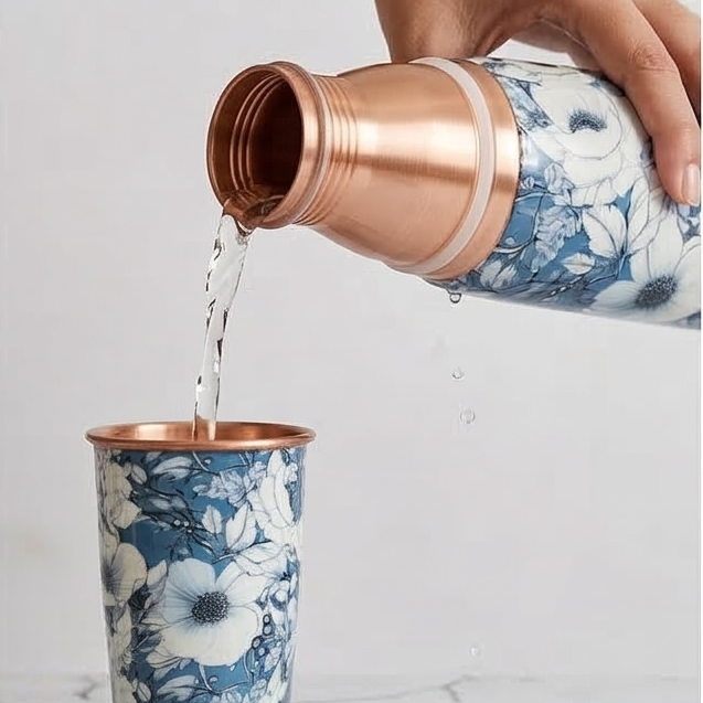 Made from 100% pure copper, it is known for its antimicrobial properties, which help inhibit the growth of harmful bacteria and keep your water fresh and clean.