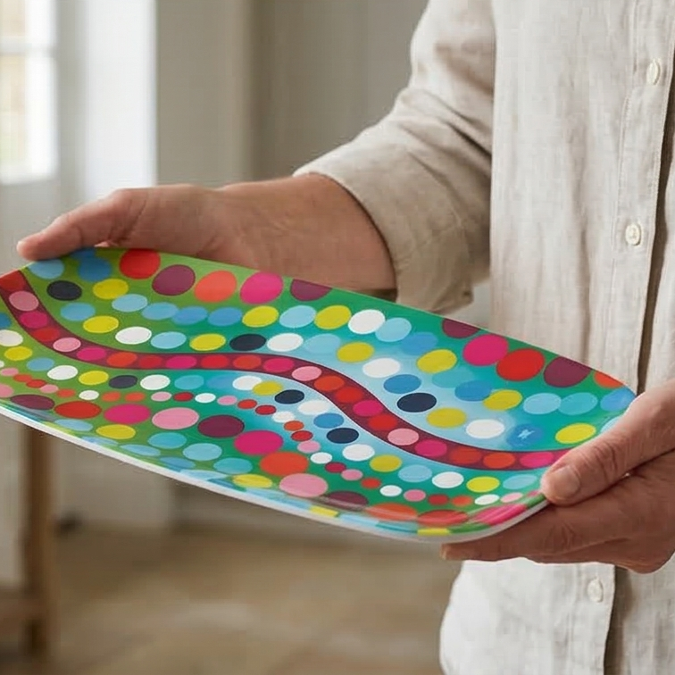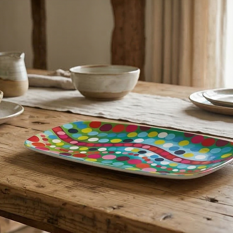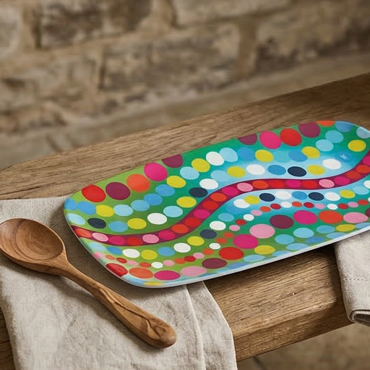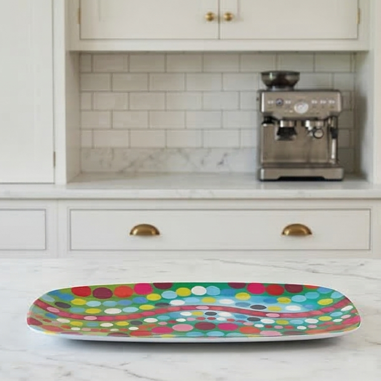 Ditch that white platter for something with a little more pop. Ok, our rectangular platter has got A LOT of pop. But we heard you‚ are into that sort of thing.