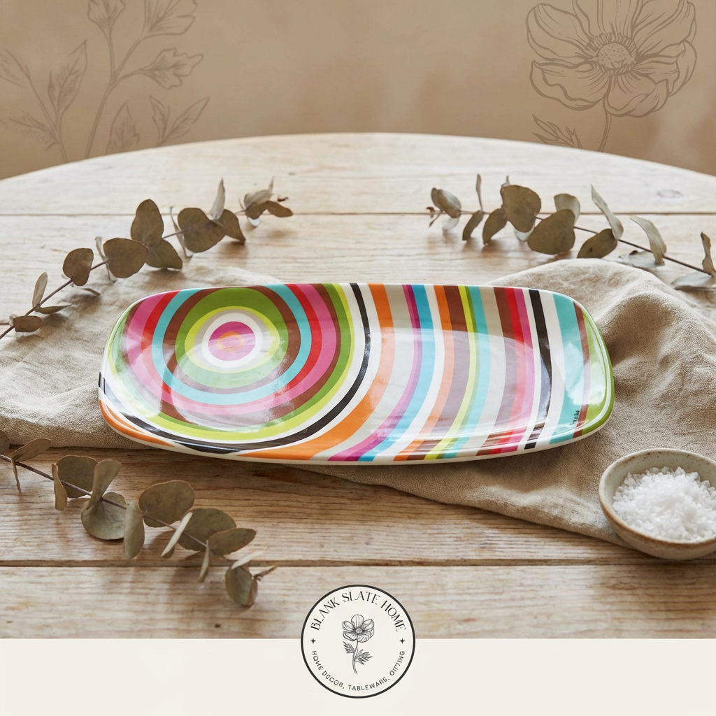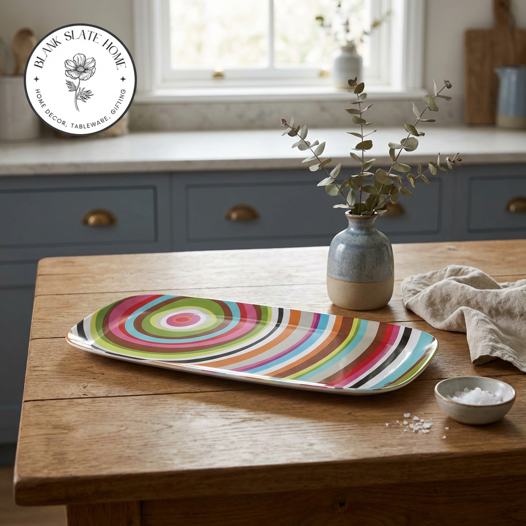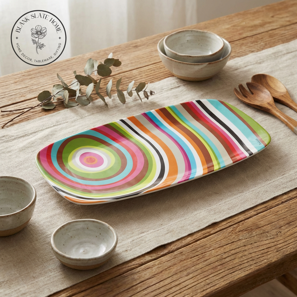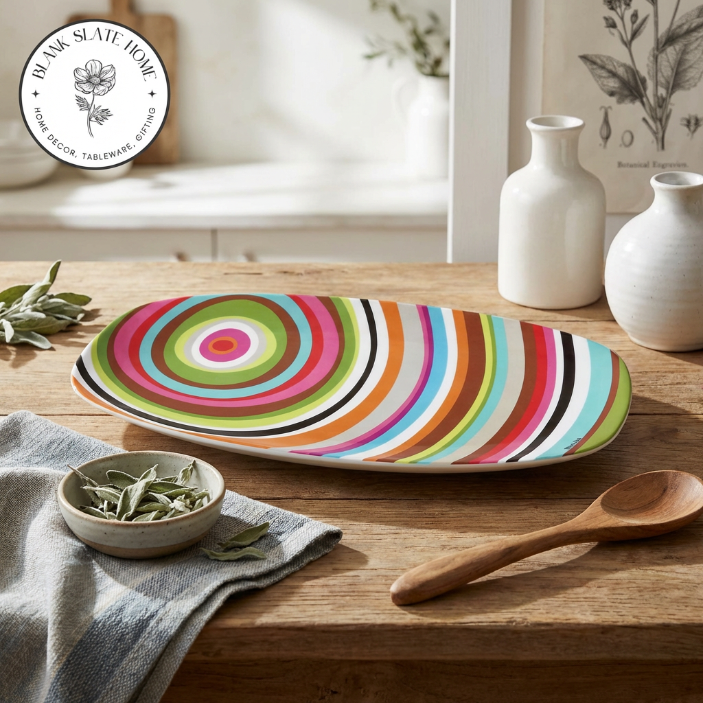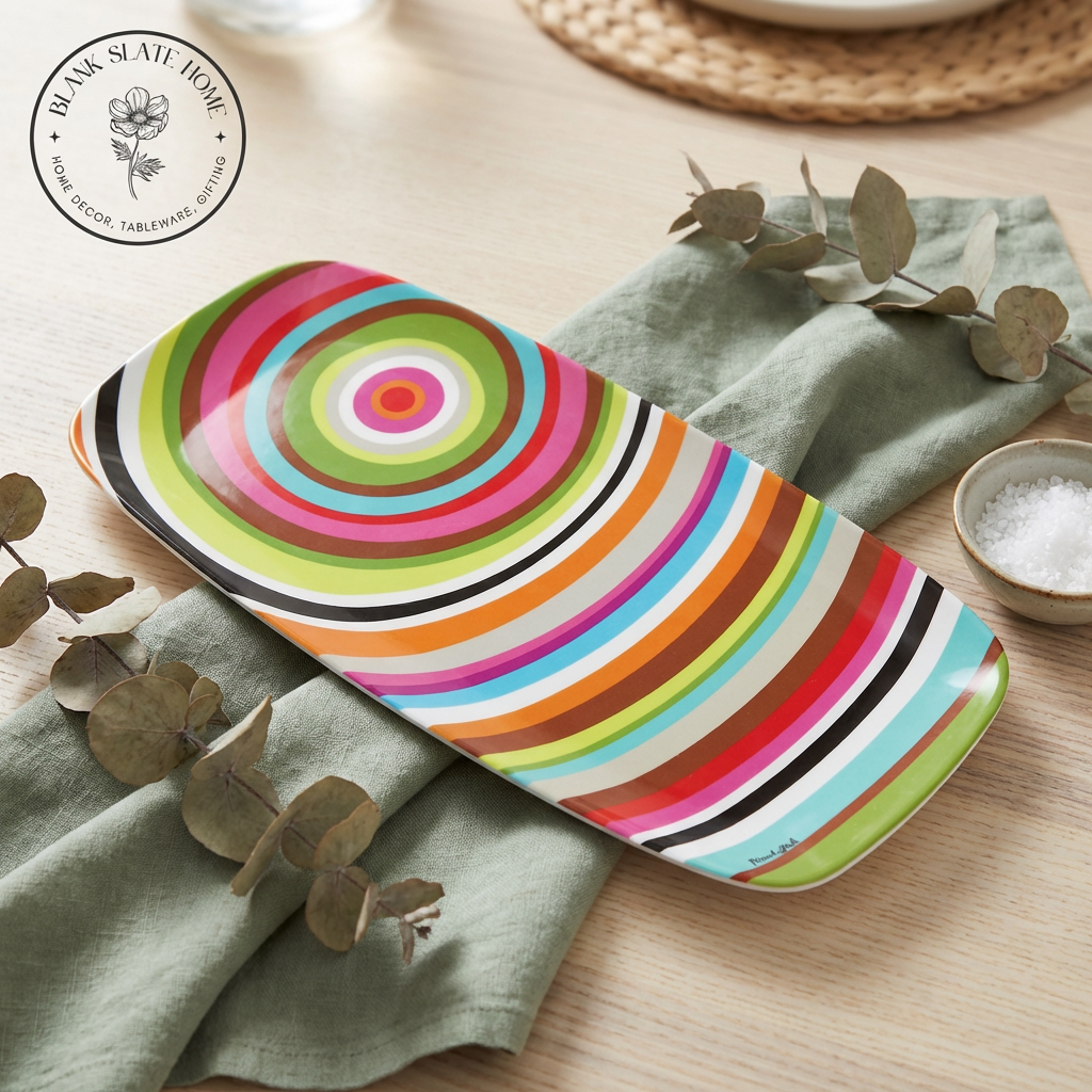 A long sleek coupe-style serving platter for indoor & outdoor meals, entertaining, picnics and barbecues. All platters coordinate with our plates to make it easy to create a unique hostess, housewarming or wedding gift. Our platterswon't break, chip or fade. LIVE VIVID!