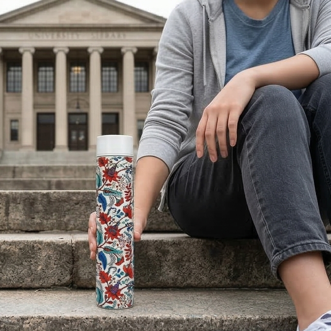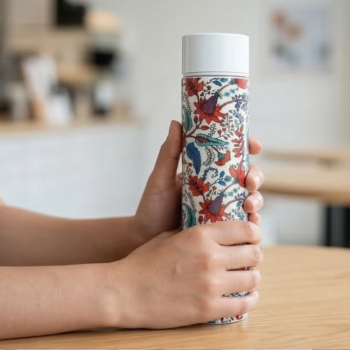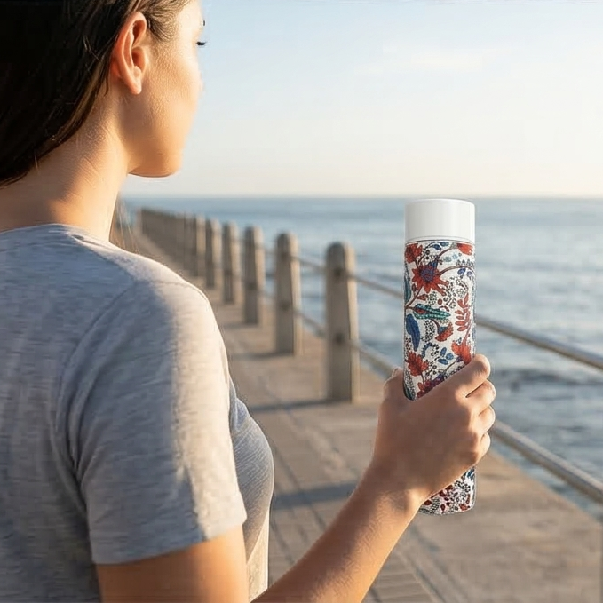 This stunning design celebrates fine craftsmanship and functionality. Made from superior construction food grade stainless steel that allows for refilling and reusing easily to reduce the need for single-use plastic water bottles. Vacuum-insulated construction, designed to keep beverages cold for up to 4 to 6 hours. Portable size is perfect for on-the-go, yoga, school or on the bedside. Slim stYle makes it easy to fit the bottle in your purse and is light weight. Fun fact: Mix and match with our signature trays to make a one of a kind set. Completely leak proof. Hand-wash only.