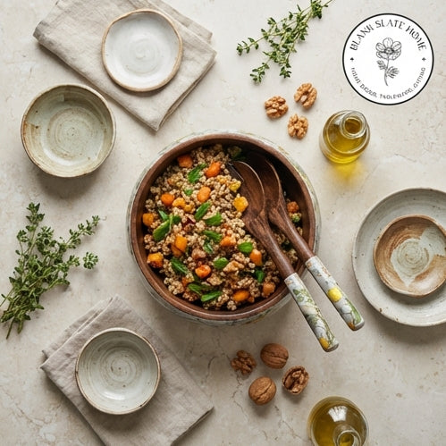 Salad Bowls round in organic curves to hold salads, snacks, fruit or collectibles. The Salad bowl is large and just the right size for serving while entertaining Paired with matching wooden serving fork and spoons. Thanks to the handcrafted nature of these bowls, each one will be slightly different and beautifully unique.