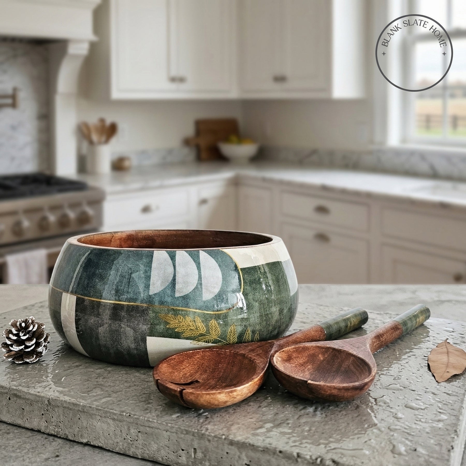 Salad Bowl - Large - Wooden Servers - Summer Rain