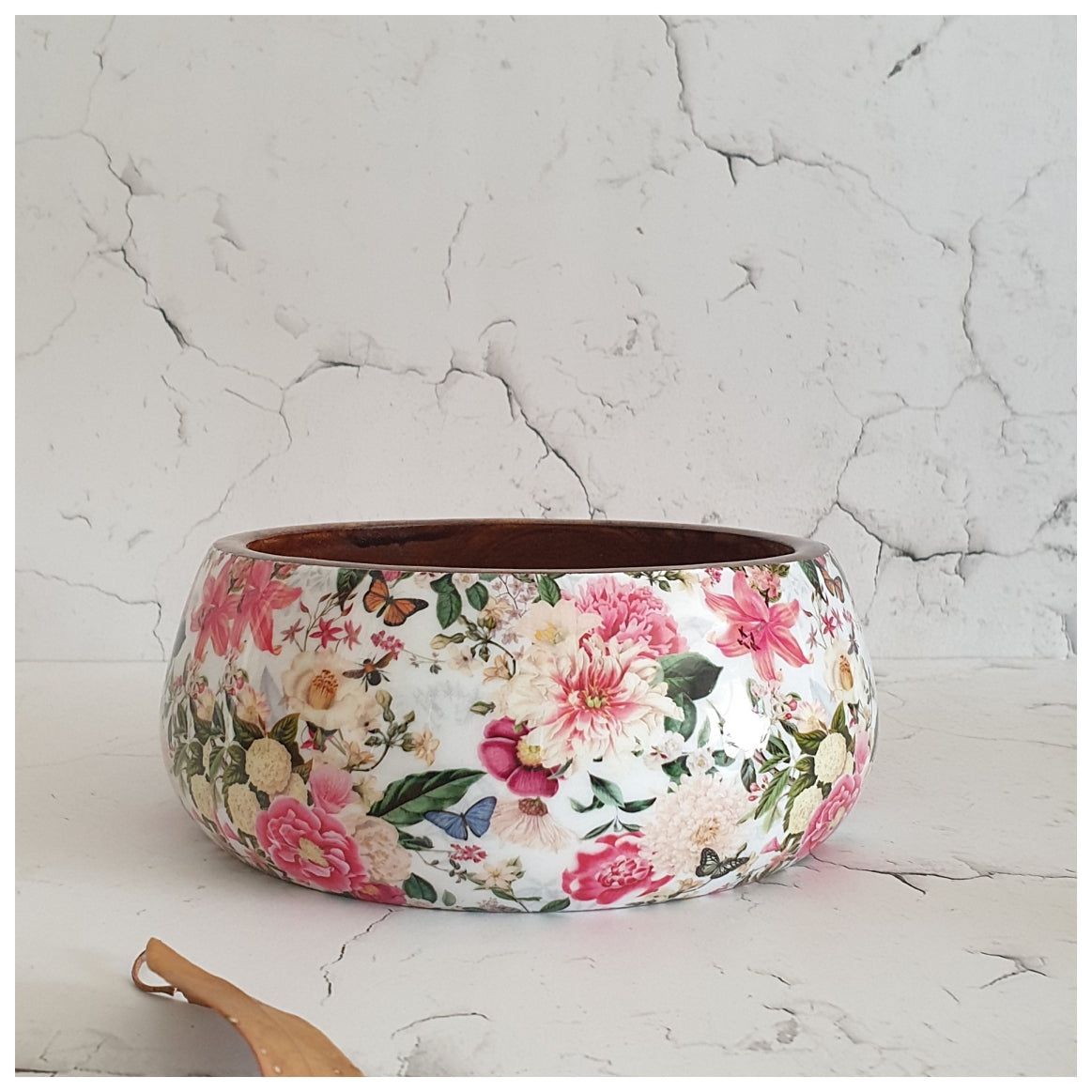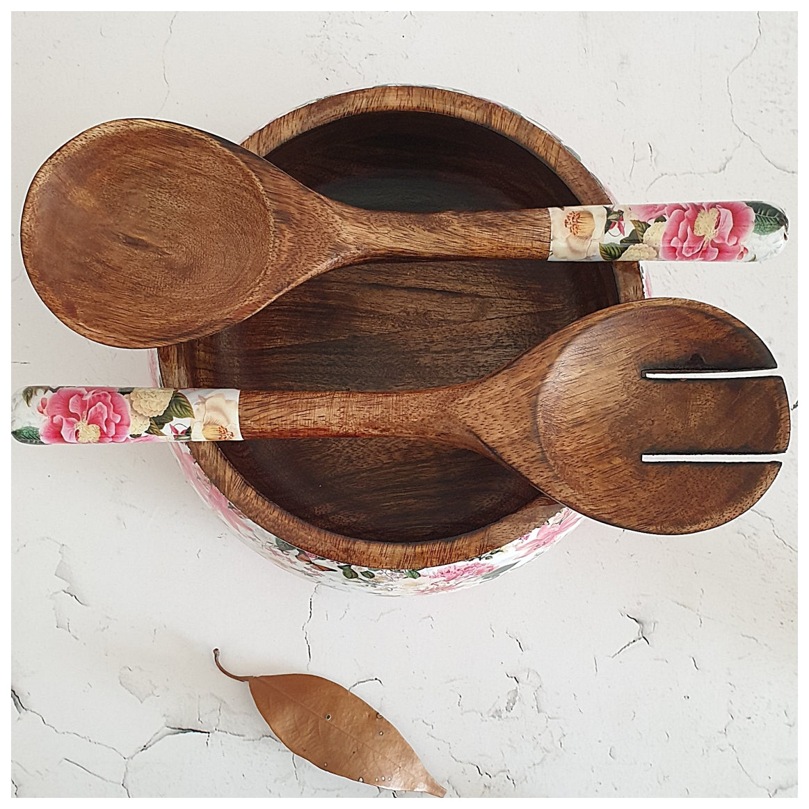 Salad Bowls round in organic curves to hold salads, snacks, fruit or collectibles. The Salad bowl is just the right size for serving while entertaining. Paired with matching wooden serving fork and spoons. Thanks to the handcrafted nature of these bowls, each one will be slightly different and beautifully unique.