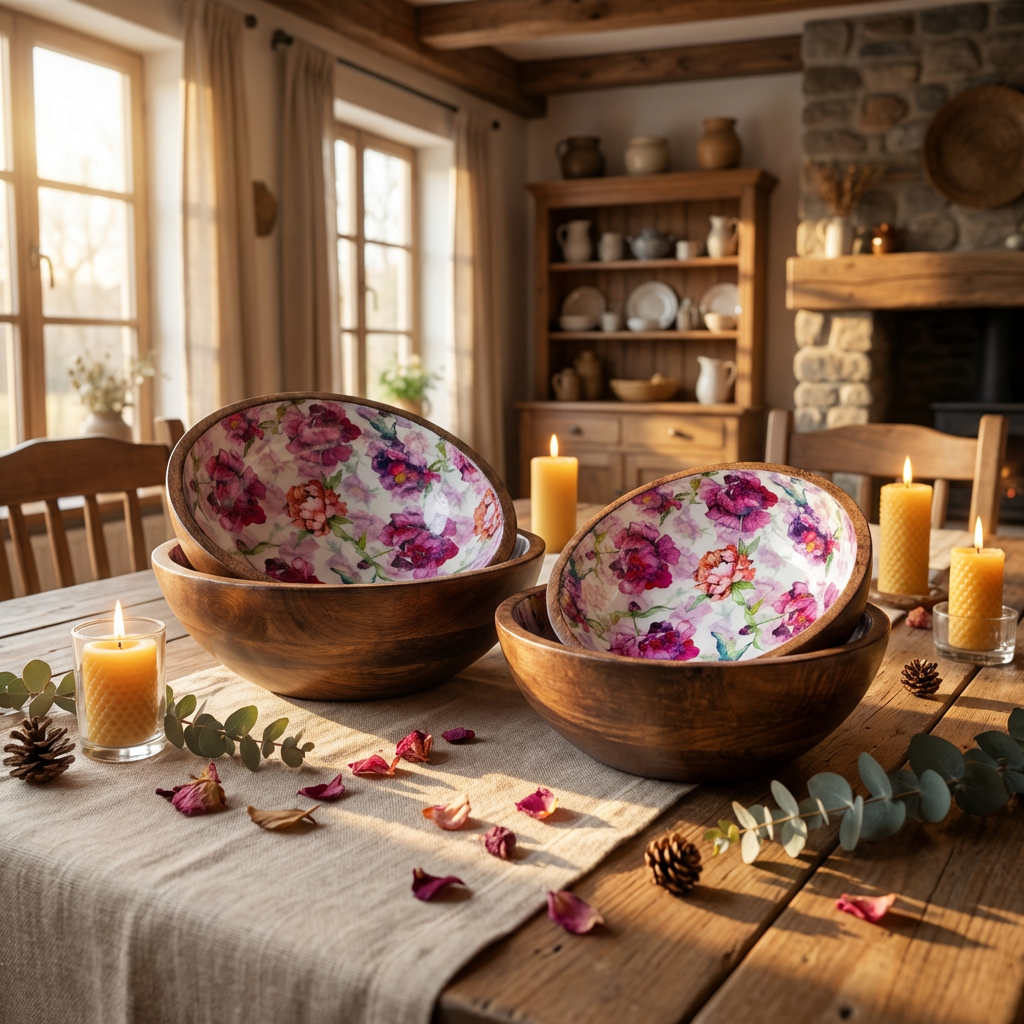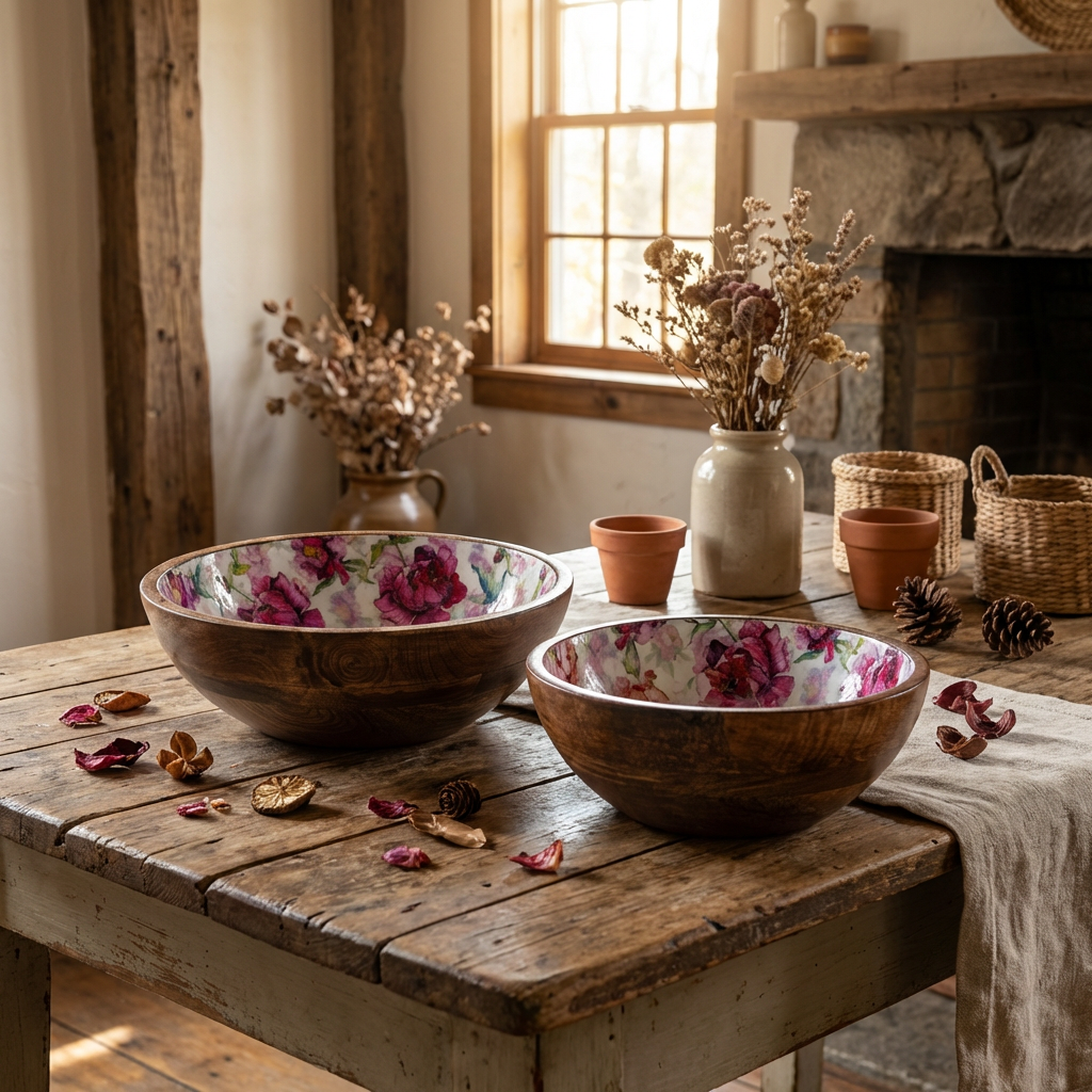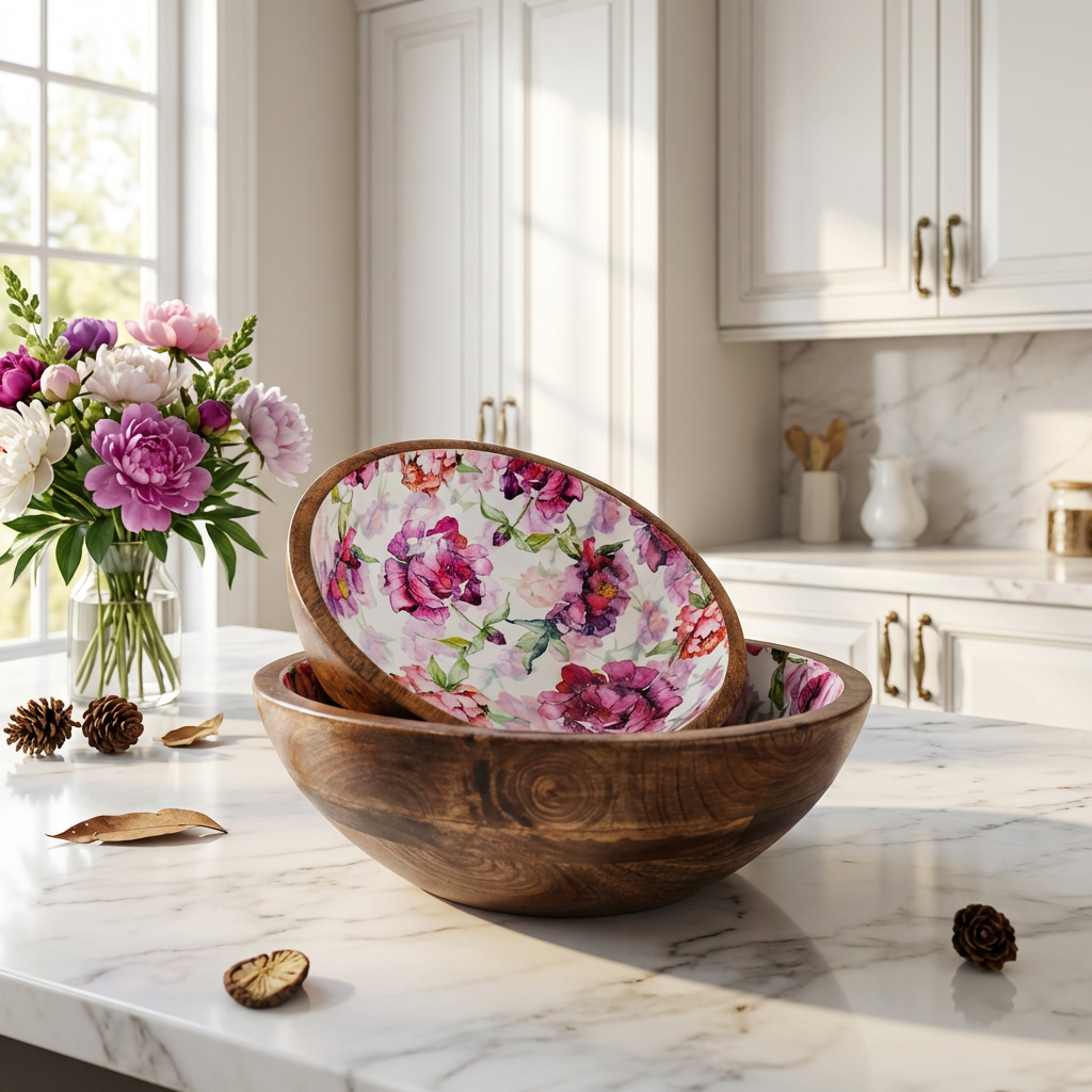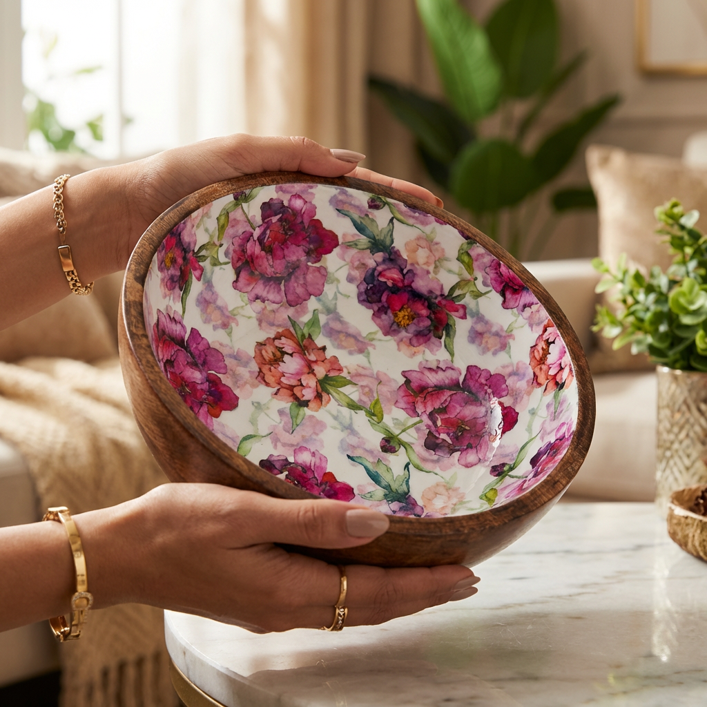 Salads, fruits, nuts and even popcorn or wafers look amazing in these show-stopping wooden bowls. Showcasing the beautiful grain of natural mango wood, each organically shaped bowl is given a contemporary print for a modern twist. The bowl will highlight your table setting and dazzle your guests.