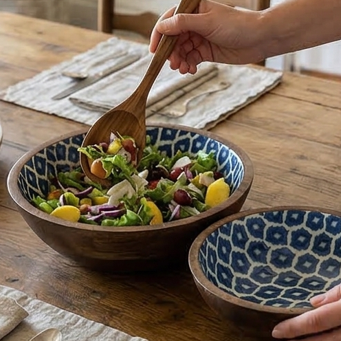 Wooden Multipurpose Bowls - Set of 2 - Ikat