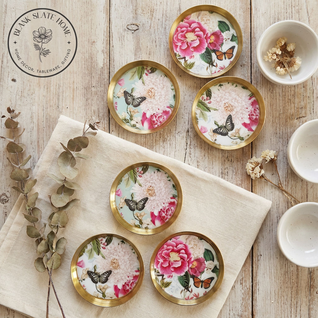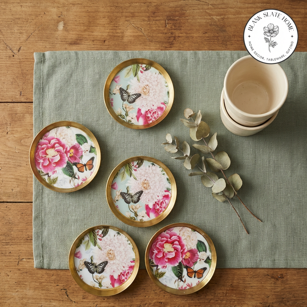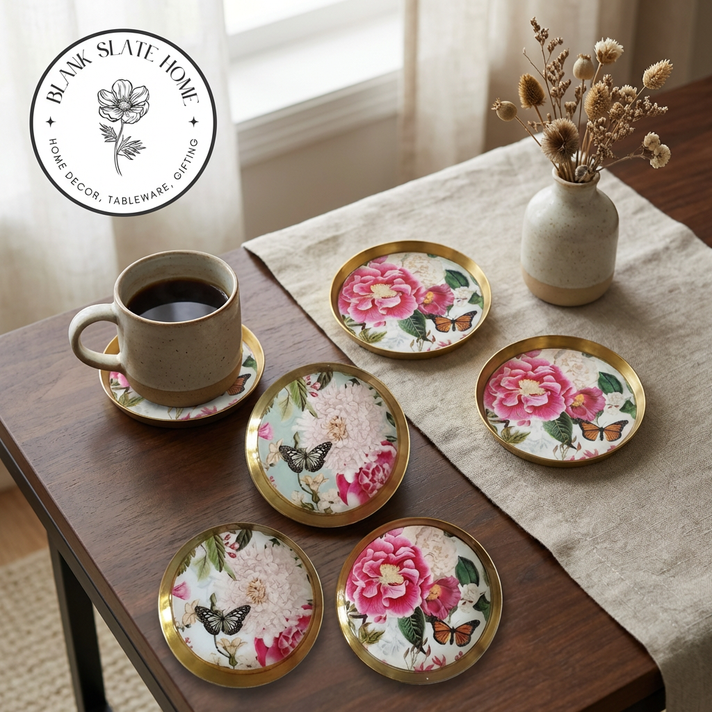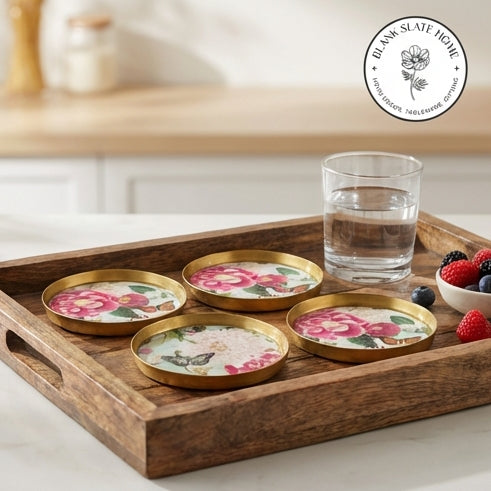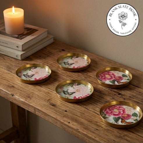 Product Description: Crafted from durable metal with an elegant brass-toned rim, this six-piece coaster set brings whimsical Alice in Wonderland charm to your table. Each coaster features intricate printed designs that protect surfaces while adding a curated aesthetic to your home. Ideal for daily use or as a thoughtful gift, these functional pieces combine practicality with artistic appeal, transforming ordinary moments into occasions worth savoring.