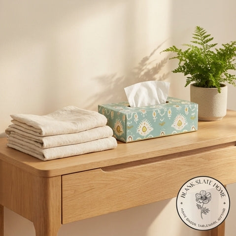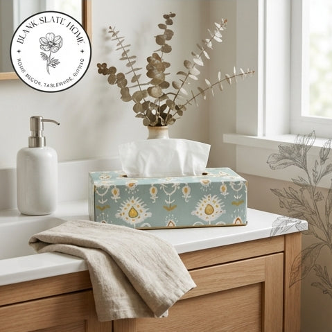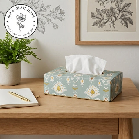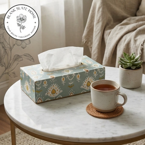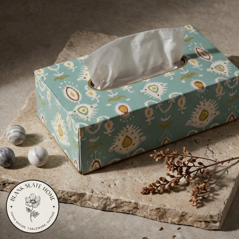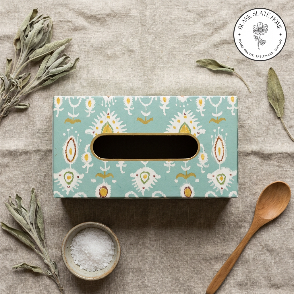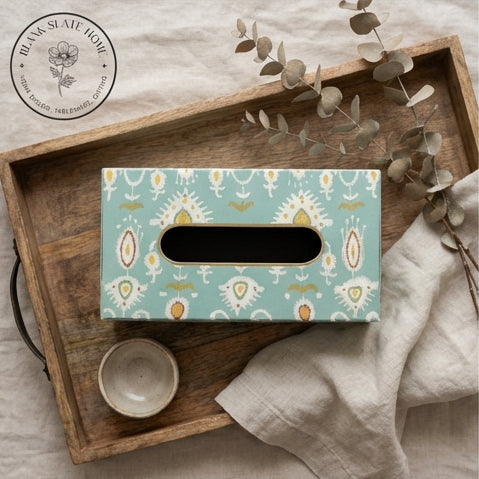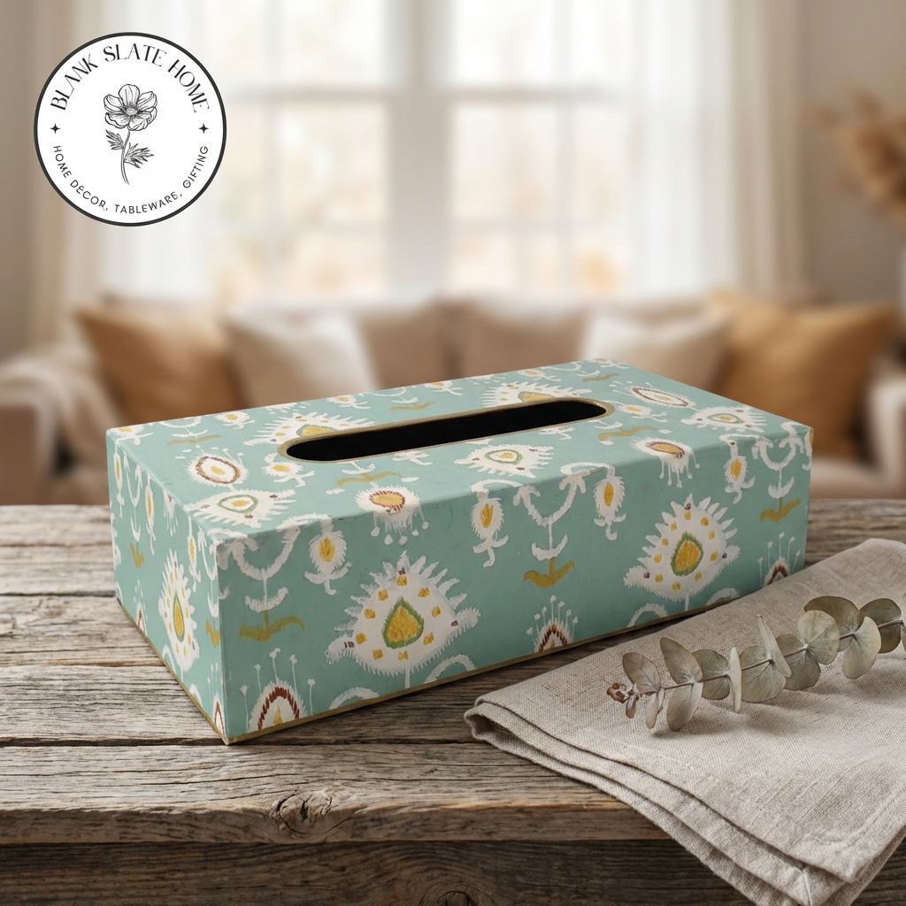Product Description: Add a touch of elegance to your home with this beautiful hand-painted tissue box holder. Made in durable metal, this tissue box adds colour and style to any corner of your home.