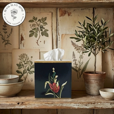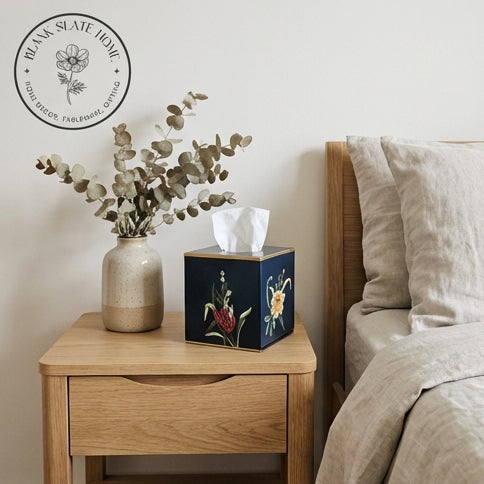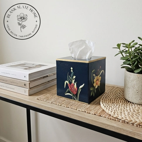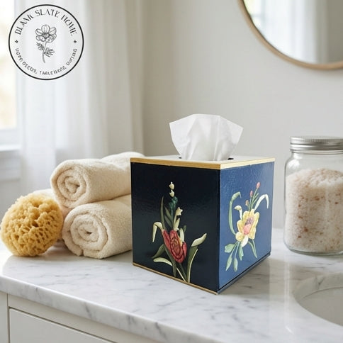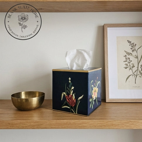 HAND PAINTED - TISSUE BOX TALL - MIDNIGHT BLACK
