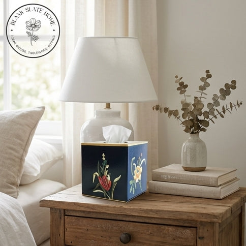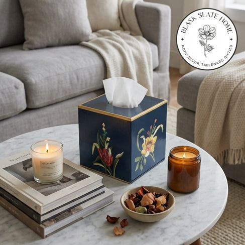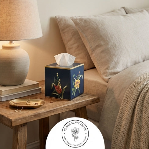 HAND PAINTED - TISSUE BOX TALL - MIDNIGHT BLUE