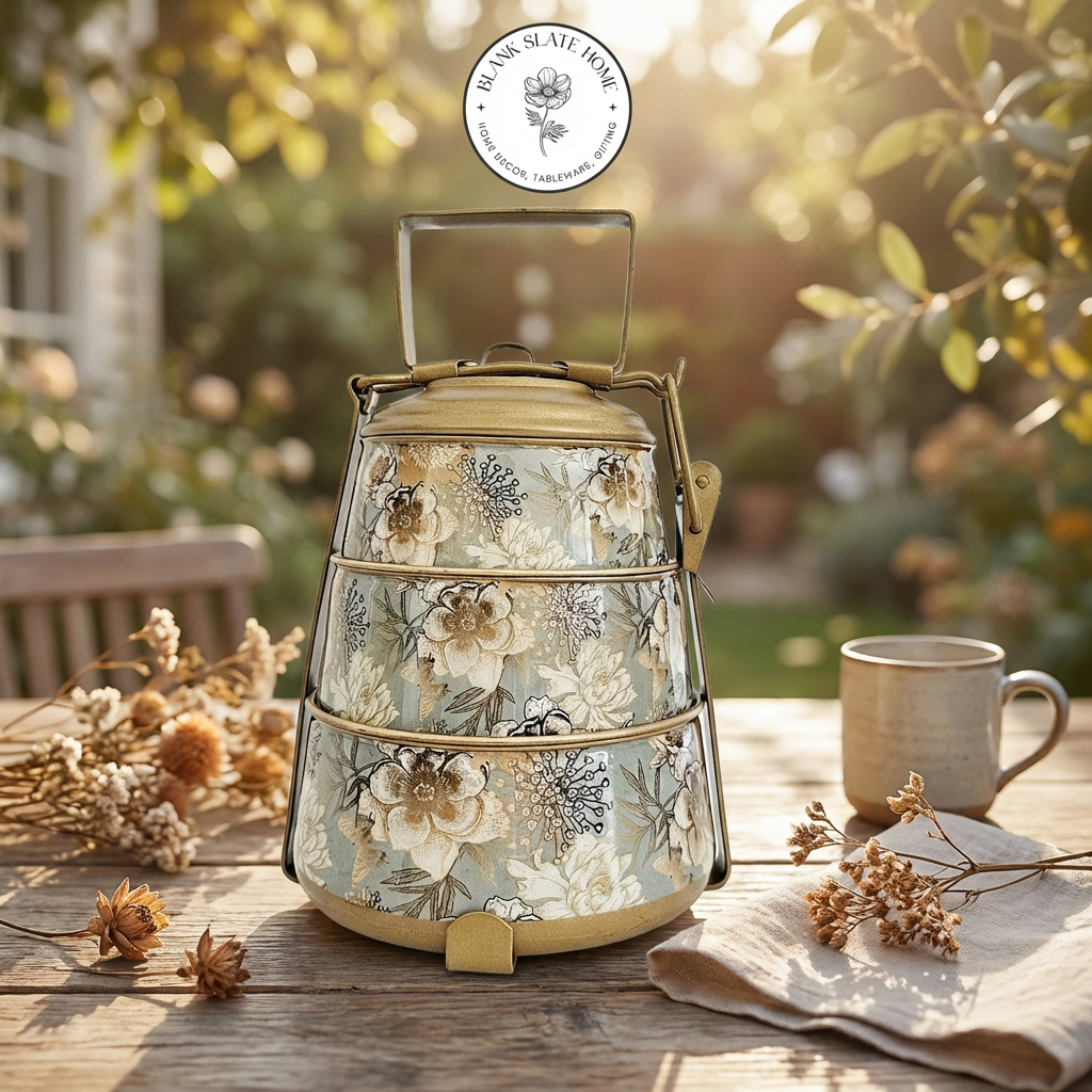 Perfect for a picnic or on-the-go meals, these stackable tin bowls are easily secured for complete portability. Each bowl can be completely separated, so they're perfect for packed lunches and snacks. Thanks to the handcrafted nature of these bowls, each one will be slightly different and beautifully unique.
