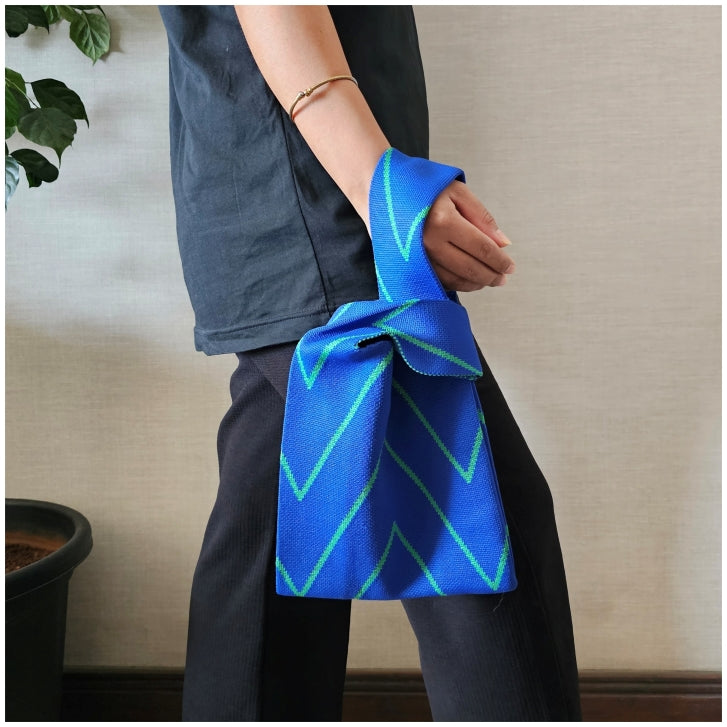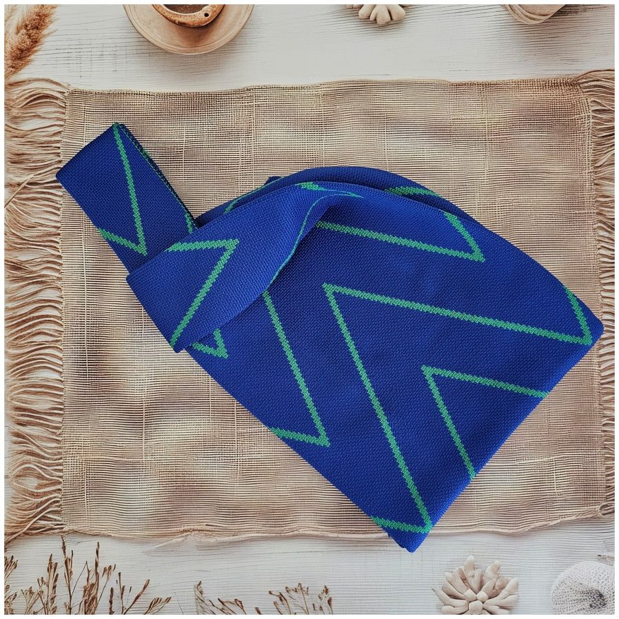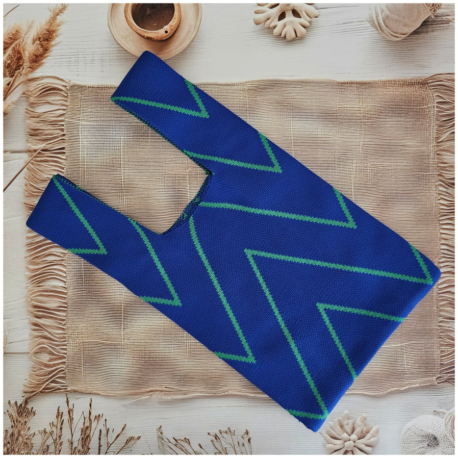 Lunch Bag - Neoprene - Blue with Green Stripe