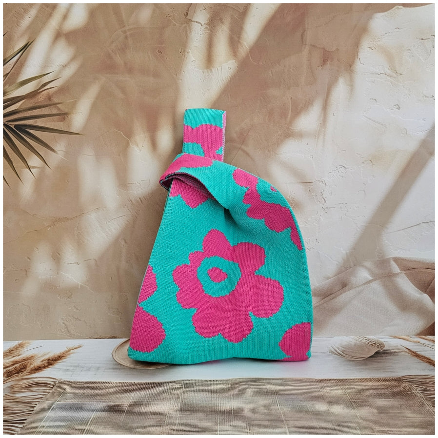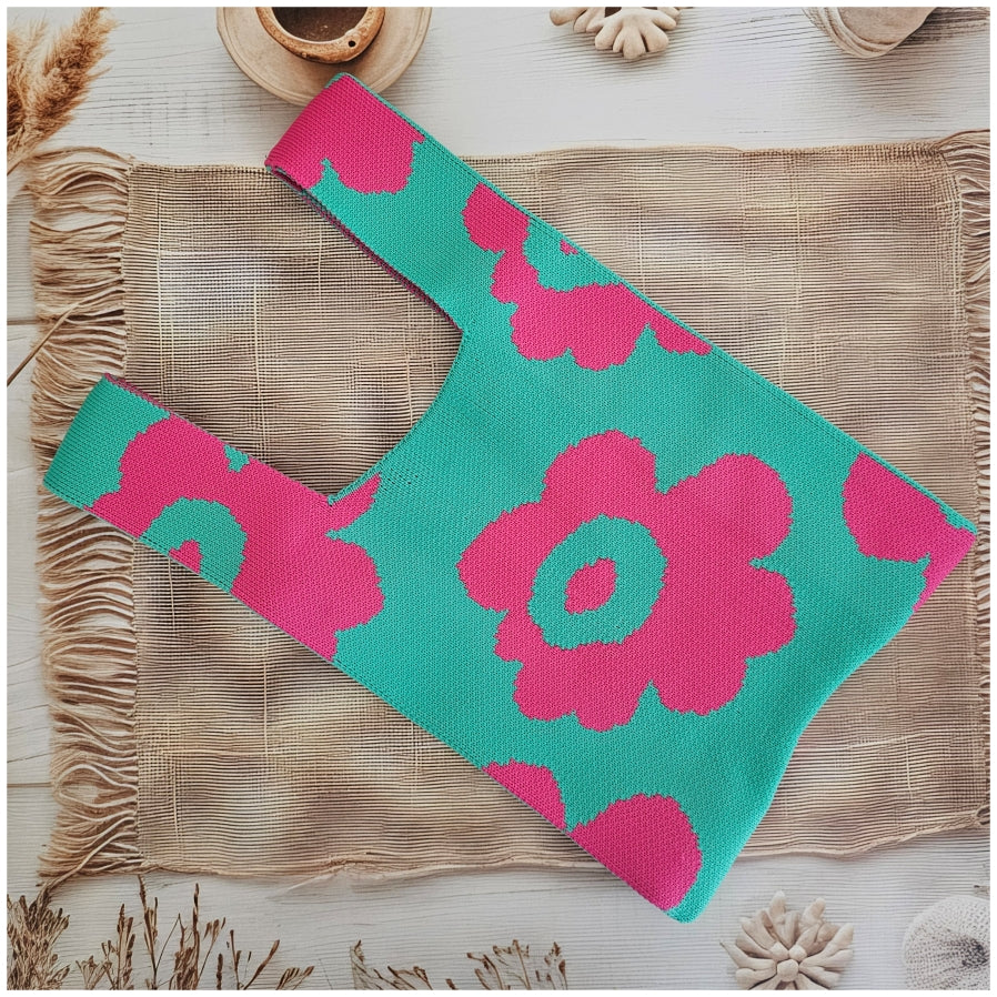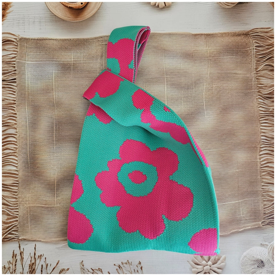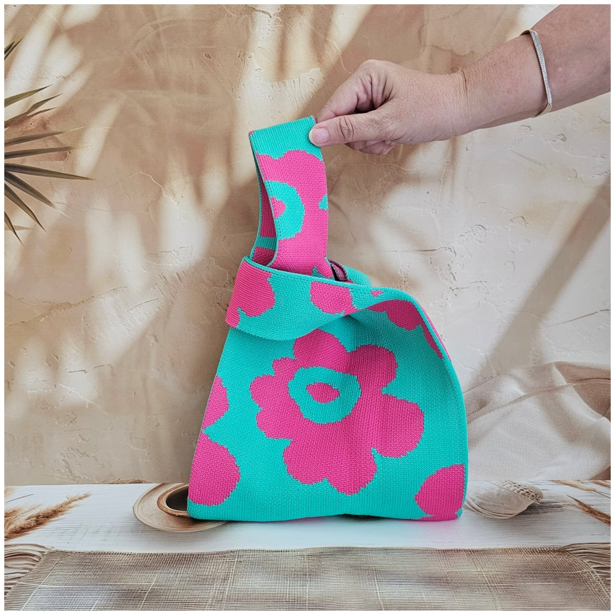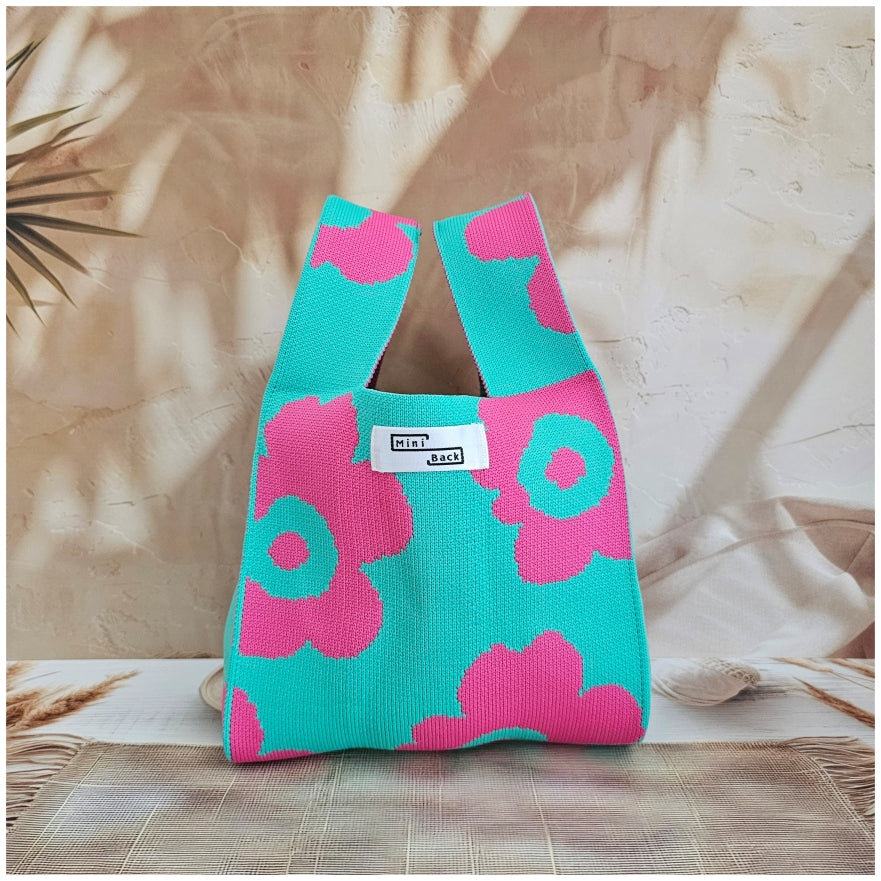 Lunch Bag - Neoprene - Green with Pink Flower