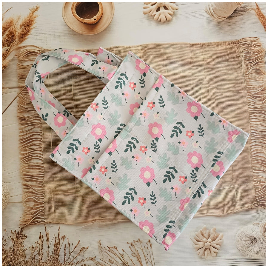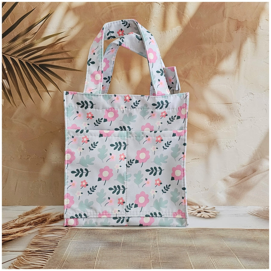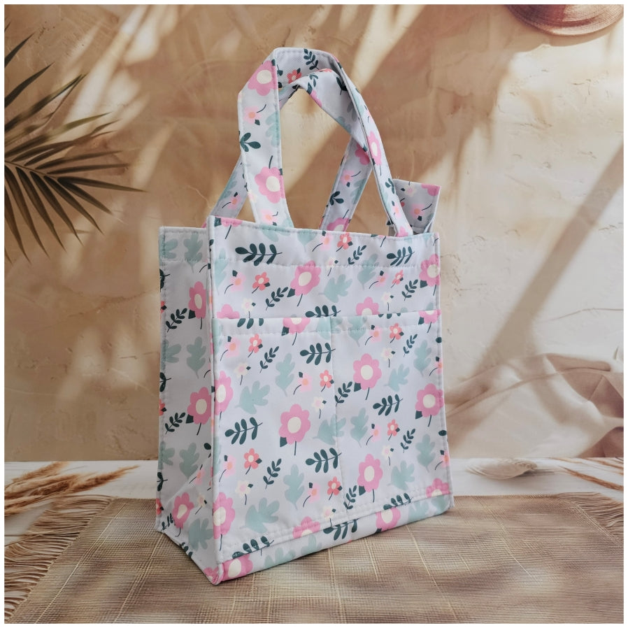 Lunch Bag - Summer Pastel Beige with Pink Flower