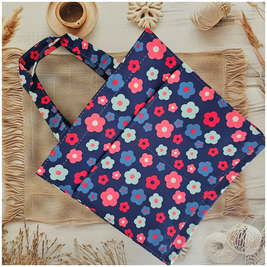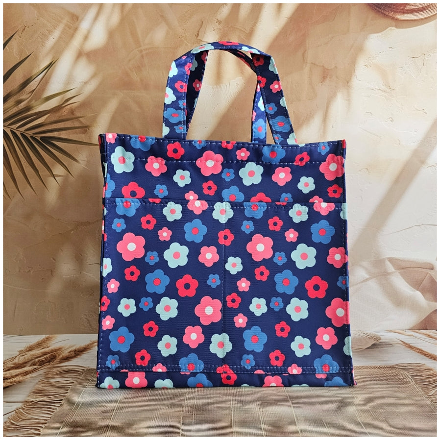 Lunch Bag - Violet with Bright Pink & Blue Flowers