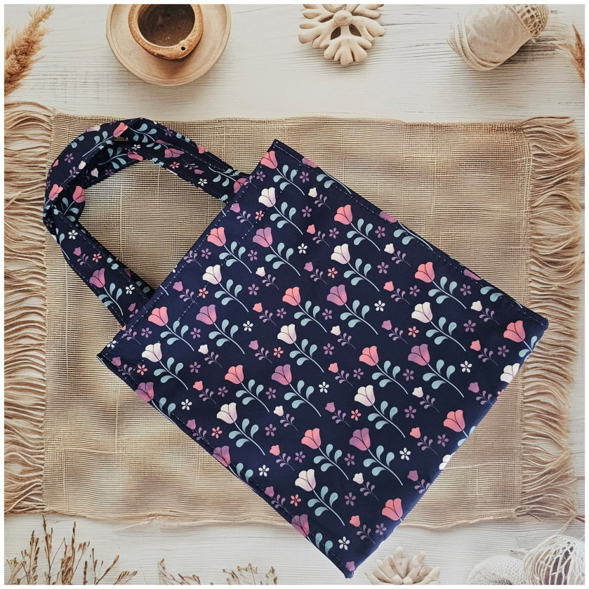 Lunch Bag - Violet with White & Pink Dandellions